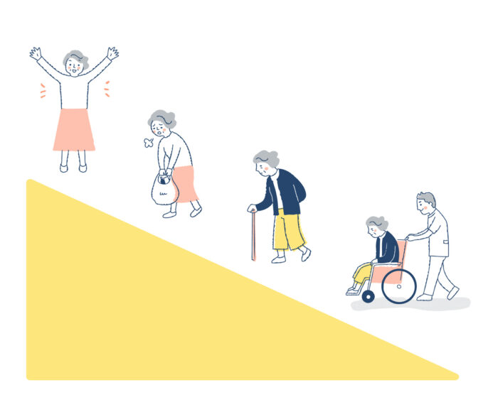 - 動きが制限され、身体活動が減少し、要介護へと進行します